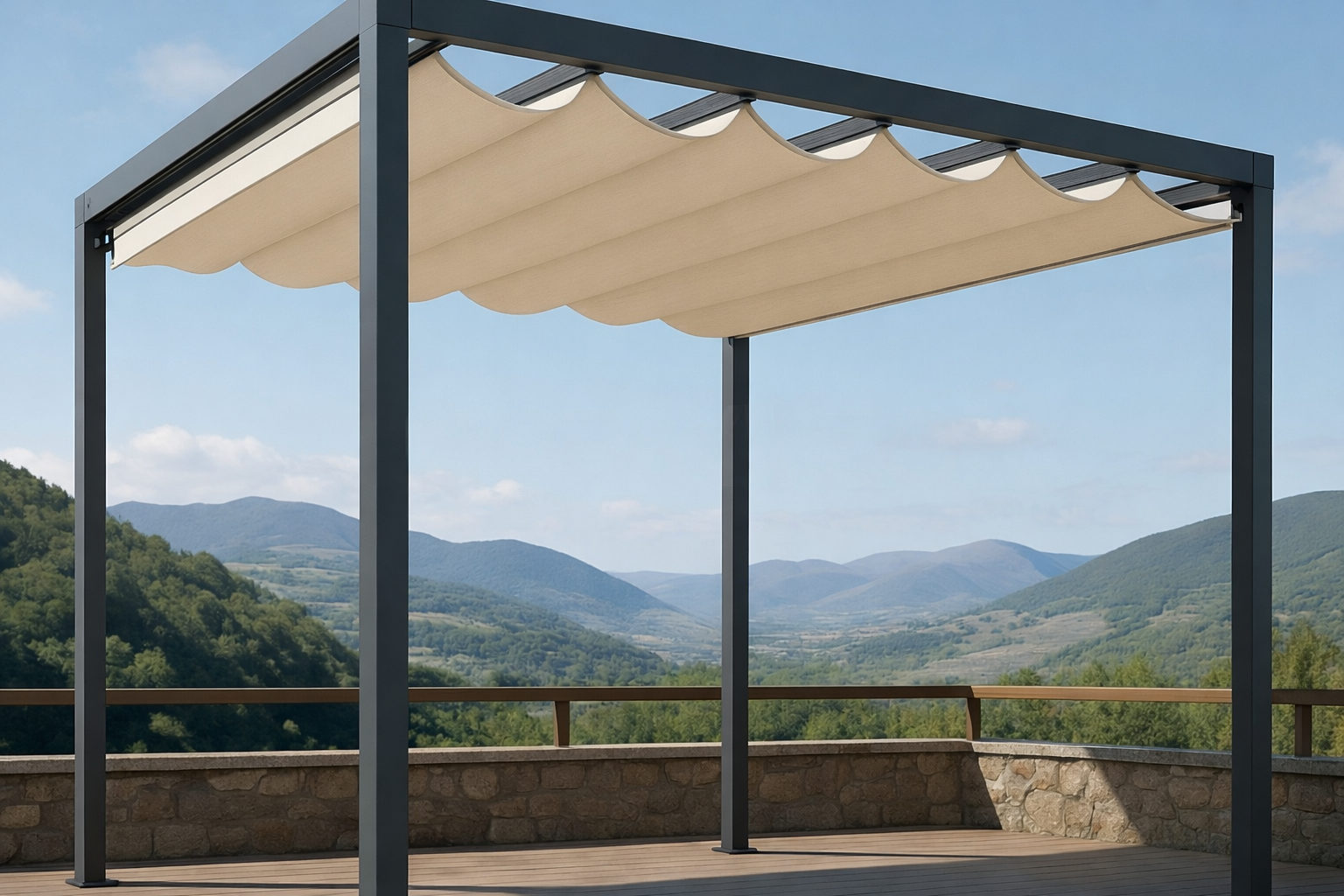Hliníková pergola s lehkou konstrukcí a zatahovací látkou