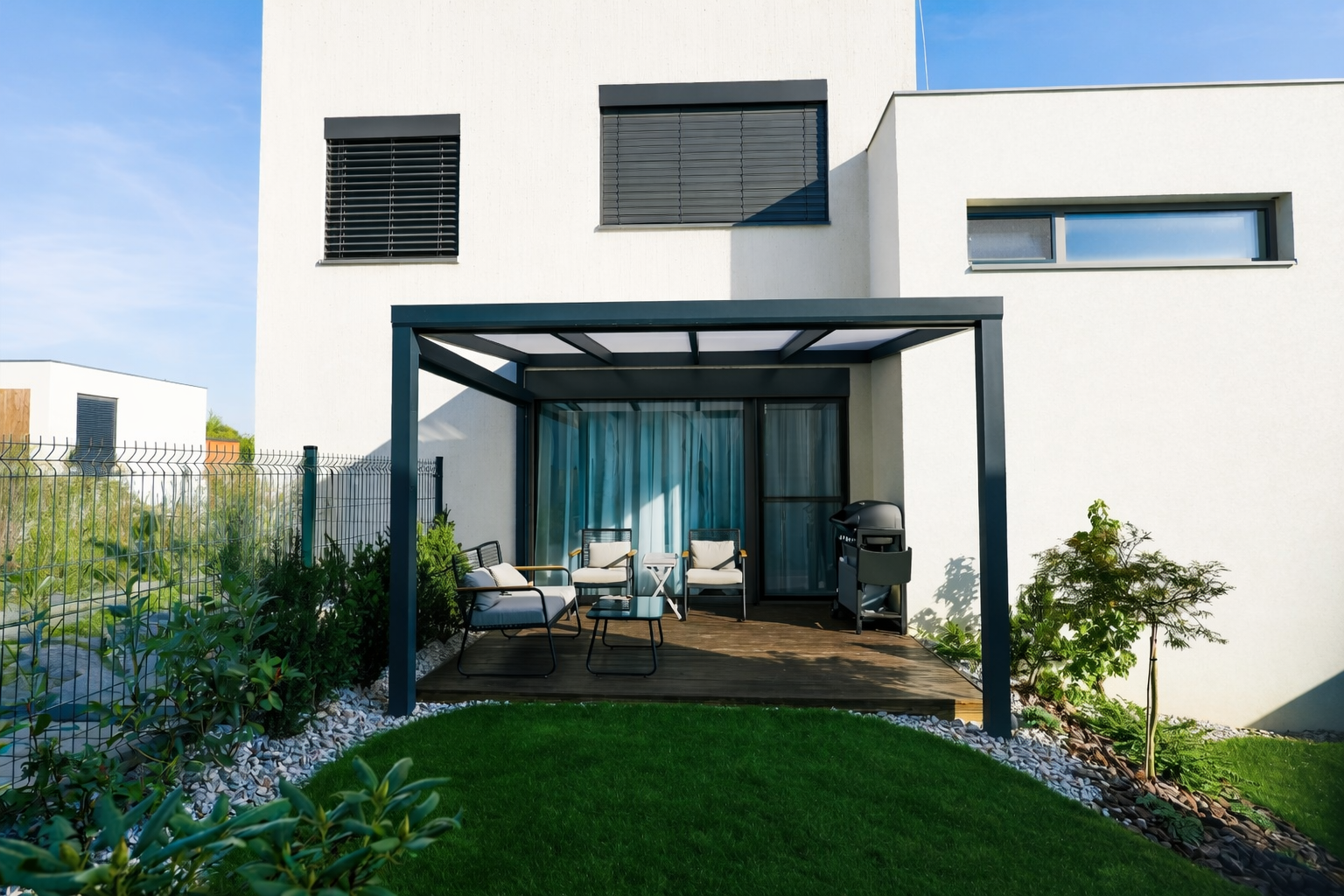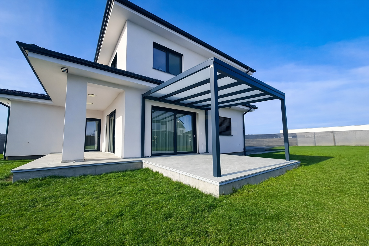 - Pergoly kotvené do domu – elegantně propojí dům se zahradou, ideální pro terasy