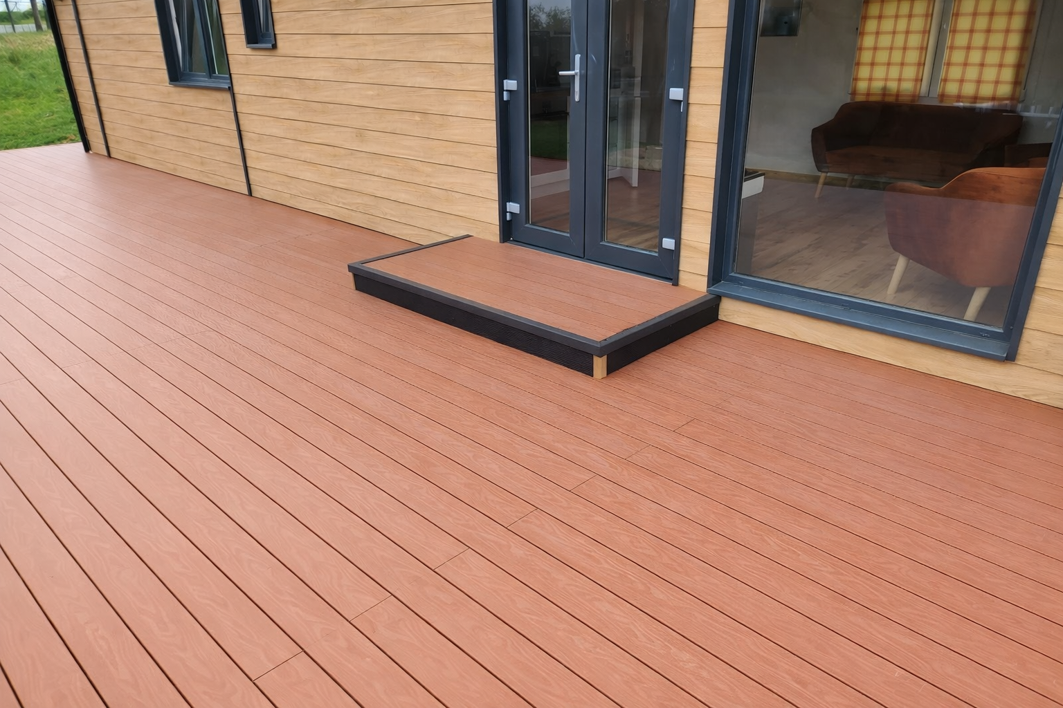 WPC terasová prkna NEXT line jsou masivní plná prkna vyráběna ze směsi kvalitního dřeva (50%), HDPE polymerů (38%) a přidaných ekologických aditiv (12%), které zajišťují nadstandardní vlastnosti materiálu. Konstrukce profilu terasového prkna byla navržena s ohledem na jeho maximální mechanickou odolnost a dlouhou životnost. Terasová prkna NEXT line jsou dostupná ve standardním rozměru 21x140mm, v délce 4m a nabízena ve třech základních barvách – antrcit, teak a tropic.